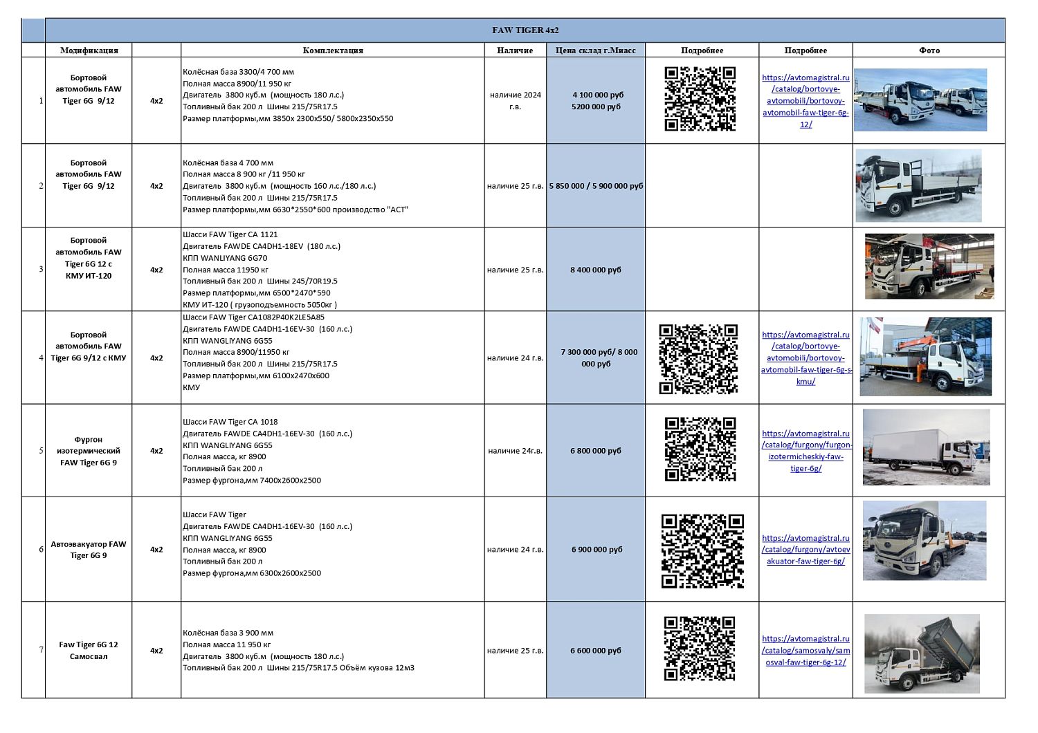✅Среднетоннажный FAW TIGER от 4 100 000 руб (бортовой)/ 6 450 000 руб (фургон)