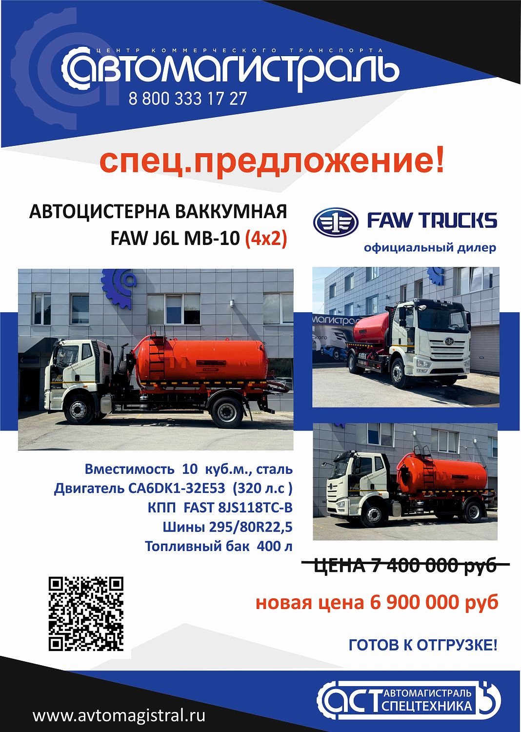 ✅Ассенизатор на шасси FAW от 6 900 000 руб