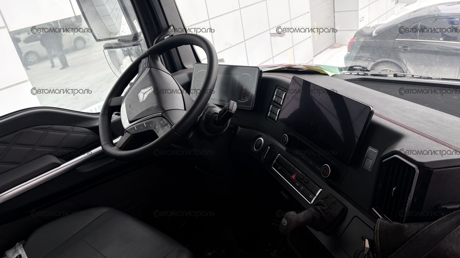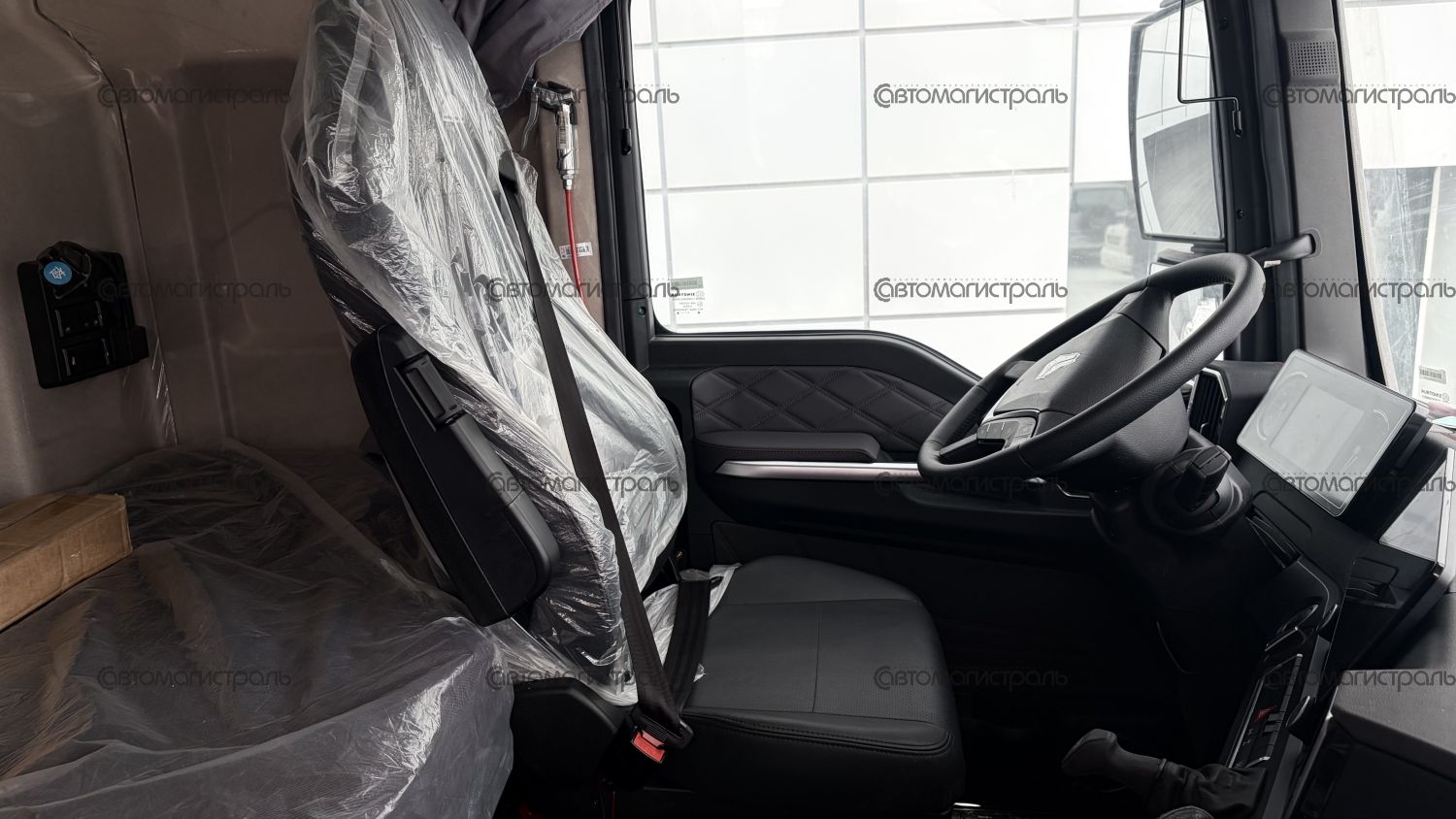 Высокоэффективное, быстрое переключение передач и пневматическая регулировка рулевого колеса, плавающая подвеска кабины, пневматическое сиденье с поясничной подушкой, а также широкое каркасное спальное место.