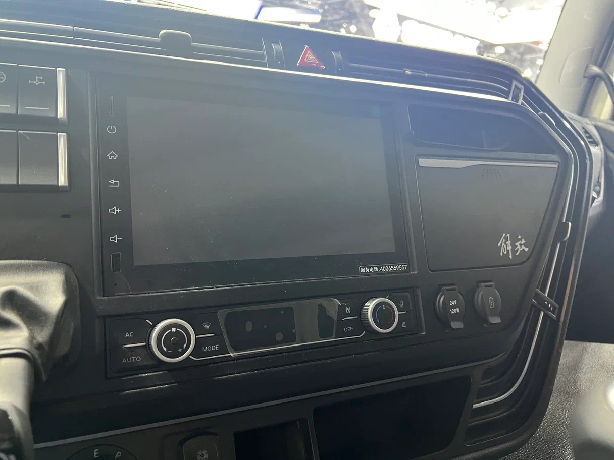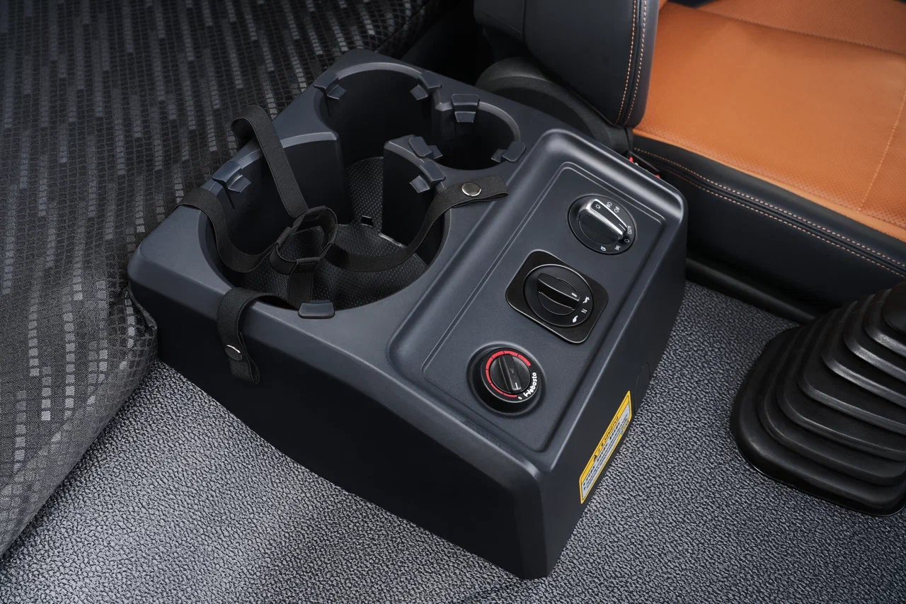 Внутри кабины значительно улучшилась эргономика. Приборная панель теперь имеет вертикальный дисплей. Комбинированные переключатели стали более компактными. Если в версии самосвала 2023 году переключатели были все в одном блоке, то в 2025 году их разделили. Слева теперь регулировка света, подъем кабины, отбор мощности. Справа аварийка, противотуманные фары и блокировка дифференциала.